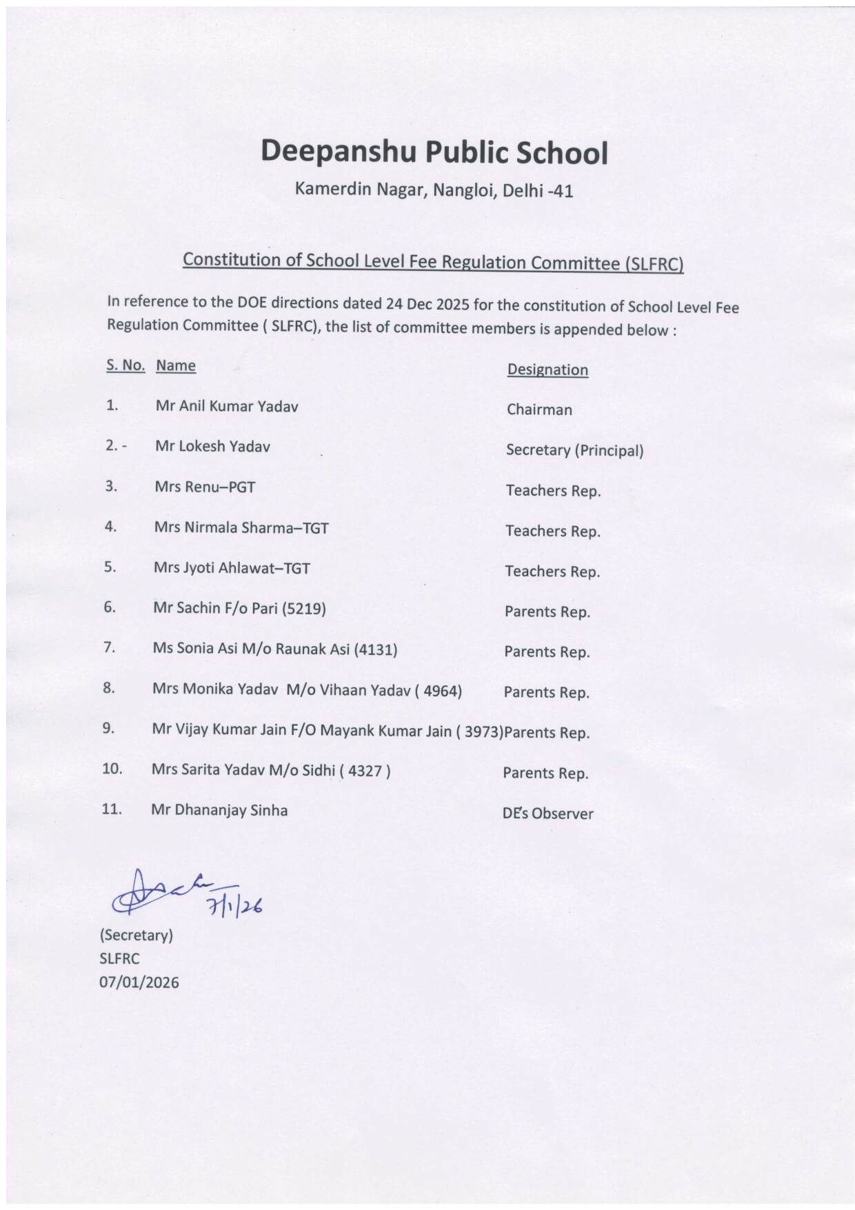 Admission Schedule for Entry Level Classes i.e. Pre-School , Pre Primary and Class-I (below six years of age) for open seats (session 2026-27)